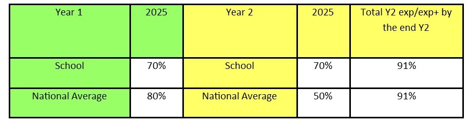 Children in Year 1 will complete a National Phonics Screener Test. Any children who does not pass this test in Year 1 are required to be re-tested in the Summer Term of Year 2.